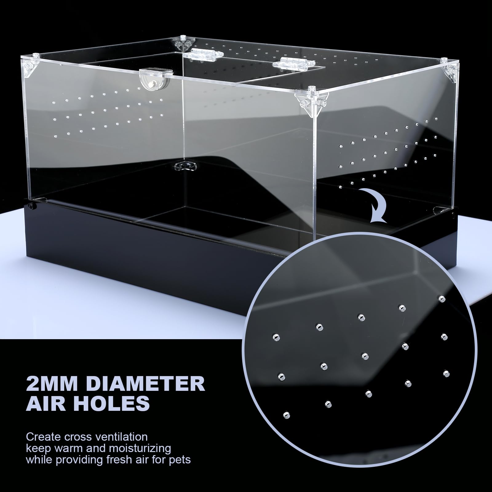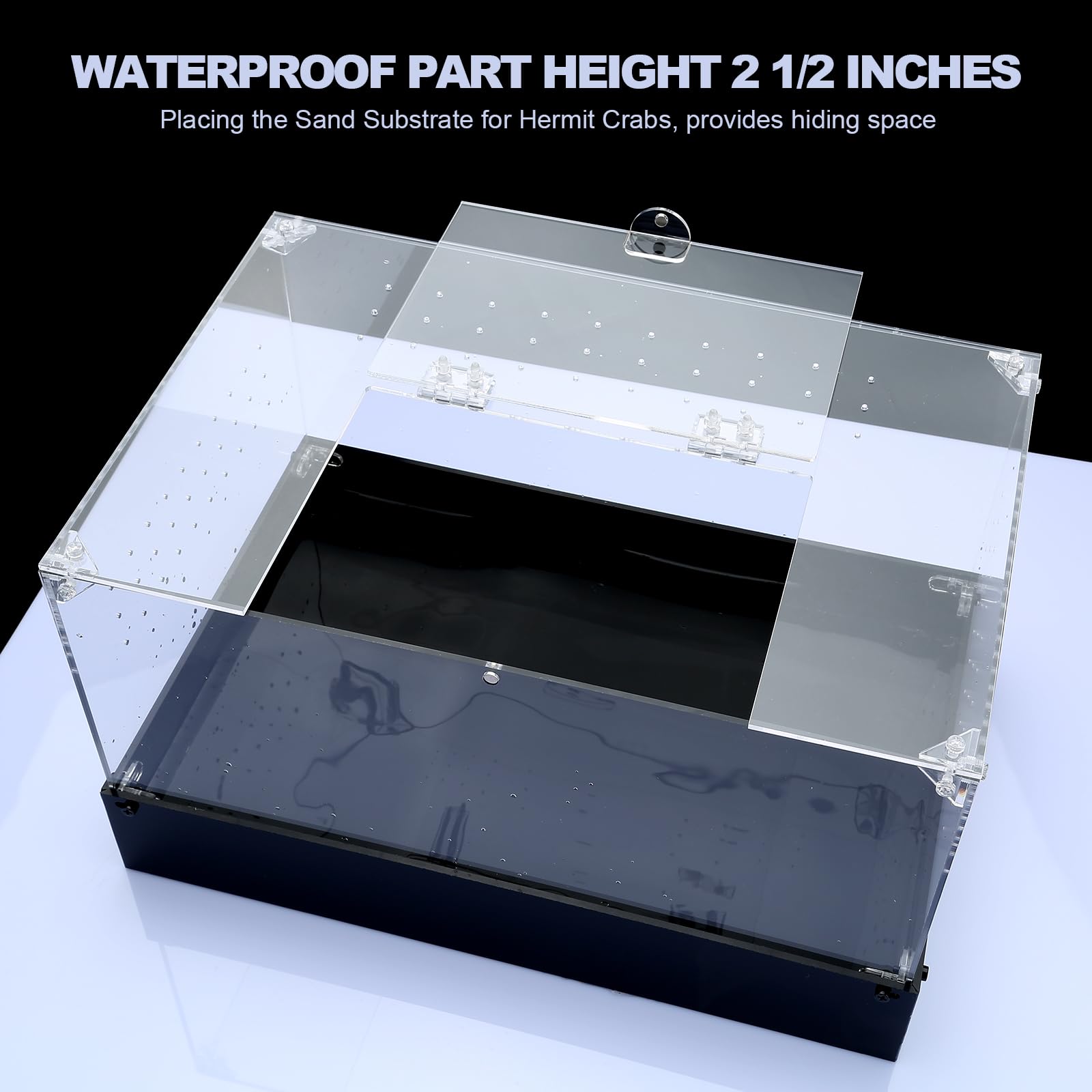 - The product is made of high transparent acrylic, the size after assembly is 15*10*8.5, the bottom is a 2.5-inch high black box, which is waterproof and provides hiding space and Hermit Crab Sand Substrate.