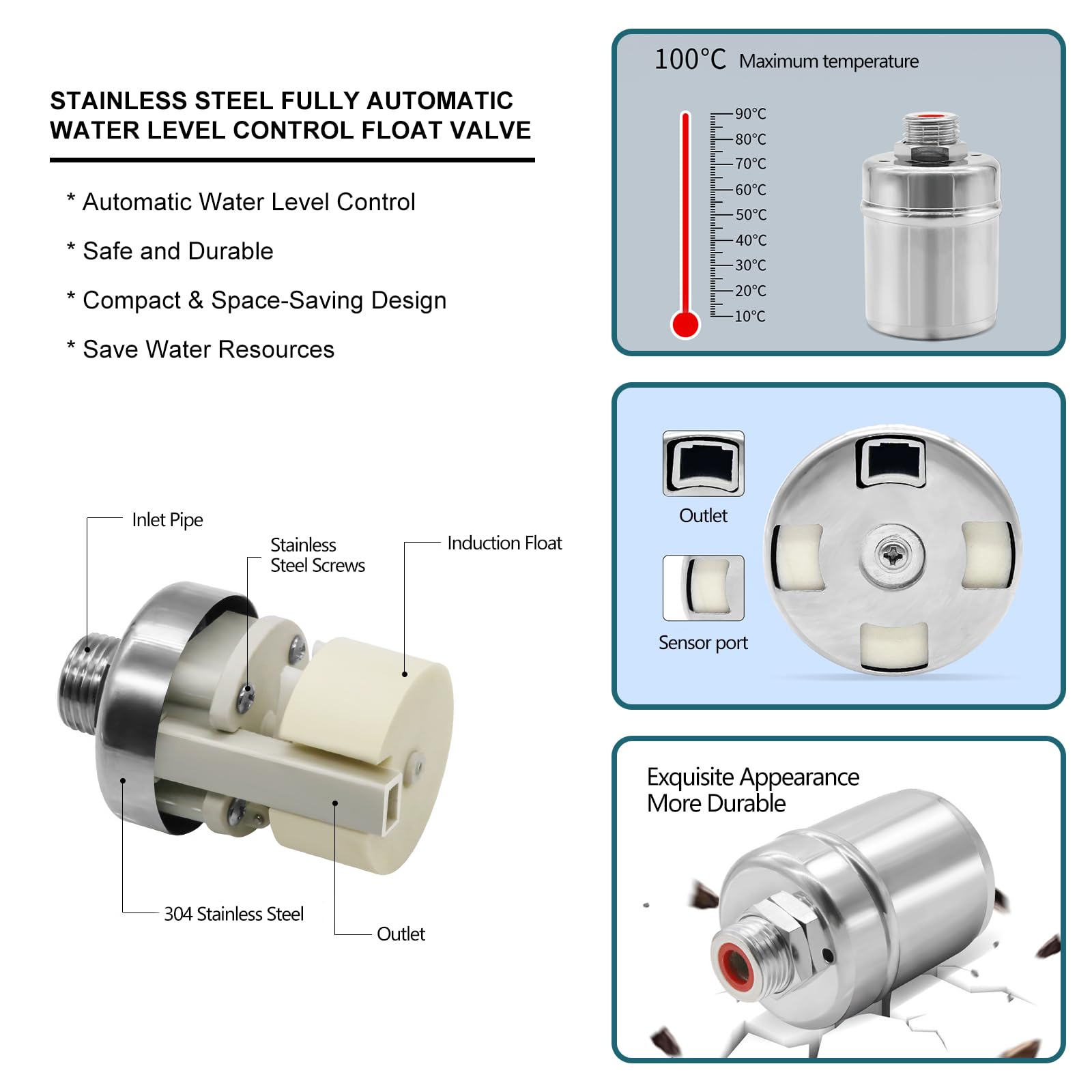 - Automatic Water Level Control: The 304 stainless steel fully automatic water level control float valve that automatically controls the water level without manual switching! It can replace the traditional floating ball valve with stable performance and high reliability. Works with water pressure between 0psi and 145 psi(Residential water pressure:40-60 psi), Saves a lot of work and water.